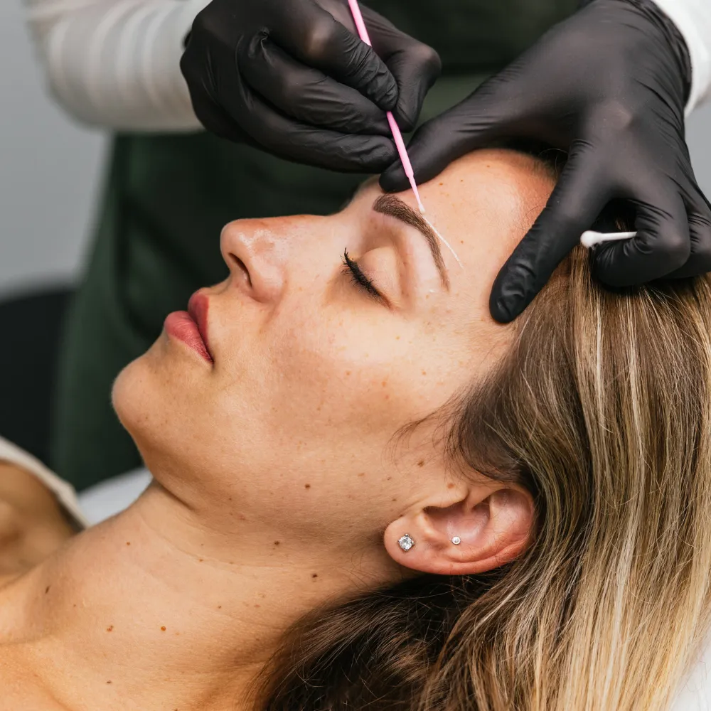 Arrive with clean skin. No makeup, lotions, or oils on your brows. Avoid tweezing or waxing at home beforehand so our brow expert can shape them precisely.